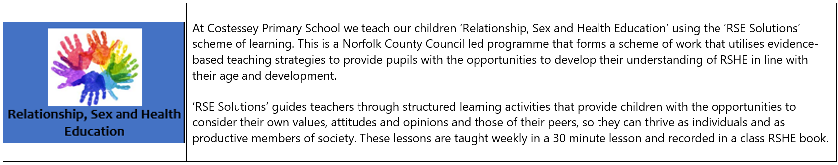 Click on the link below to find out more about our RSE (Relationships and Sex Education) curriculum: